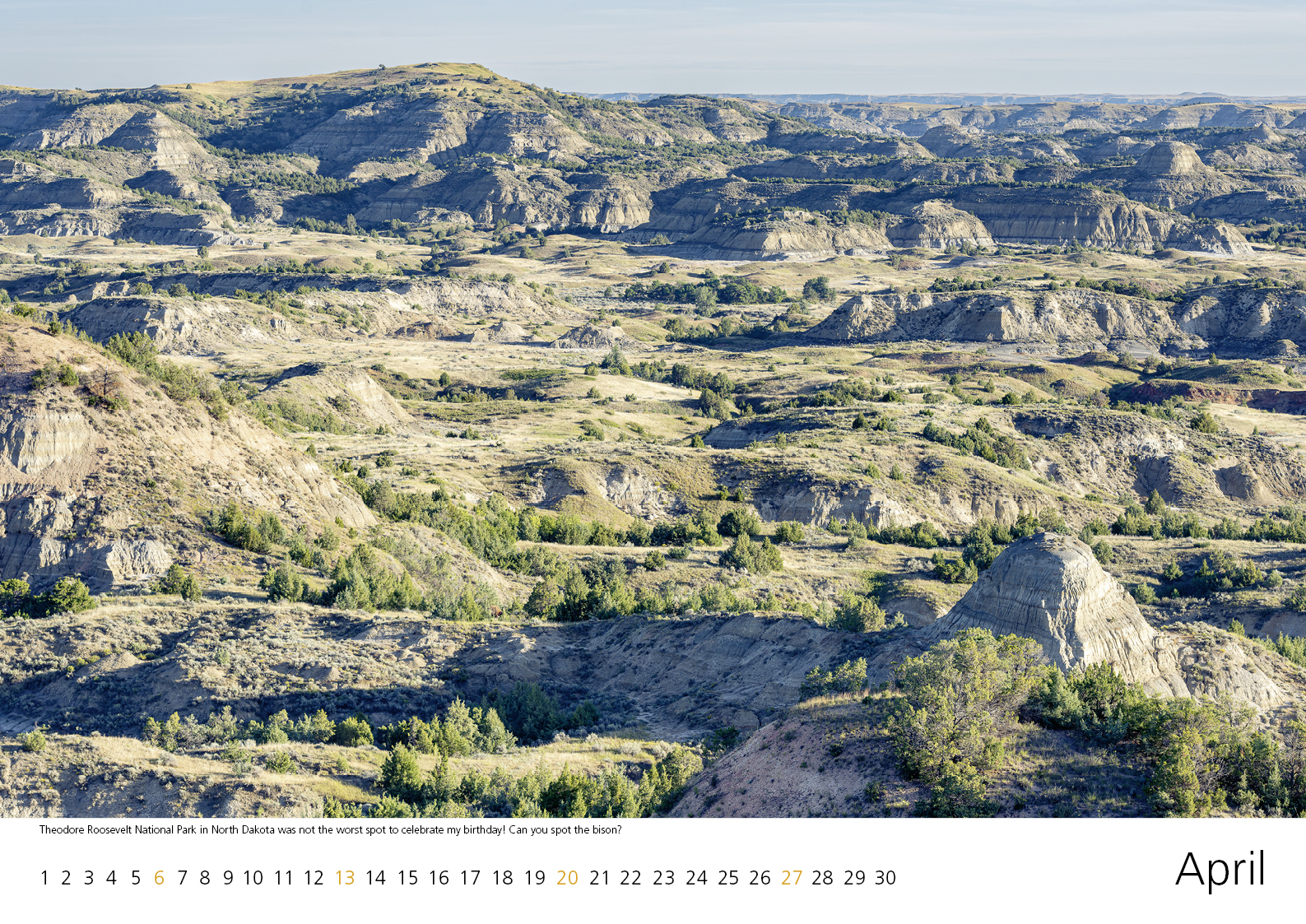 Up, up then West!Join me, my partner Cat, our dog Sadie, and Bill the car on an American adventure! When we left our home this summer, our vague plan was to drive up to Michigan’s upper peninsula and then west. And indeed, once we reached Lake Superior, we started driving west, then more west, and even further west, and finally made it to Montana! We passed beautiful lake shores, vast prairies, and majestic mountain peaks along the way. The photos were difficult to get, requiring Sadie to withstand hours of bumpy dirt roads, risking my life in Grizzly country, or Cat patiently waiting in line at overcrowded National Park overlooks. The calendar is complemented with pictures from a brief solo trip even further west to Washington. From each calendar sold one-third of the price will be donated towards a small personally known charity in Colombia. |